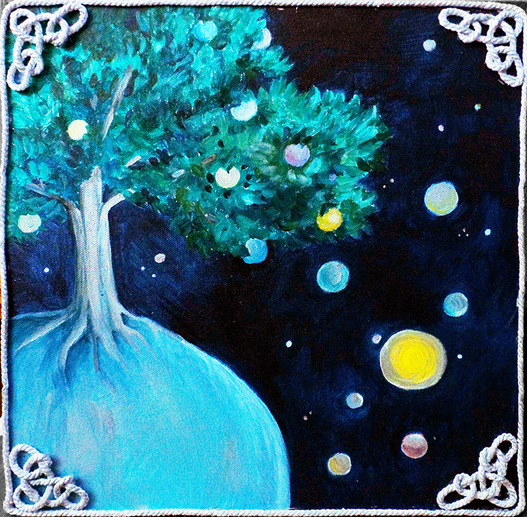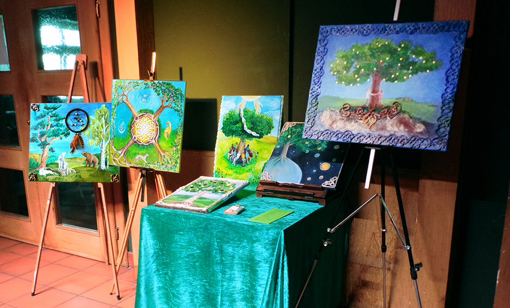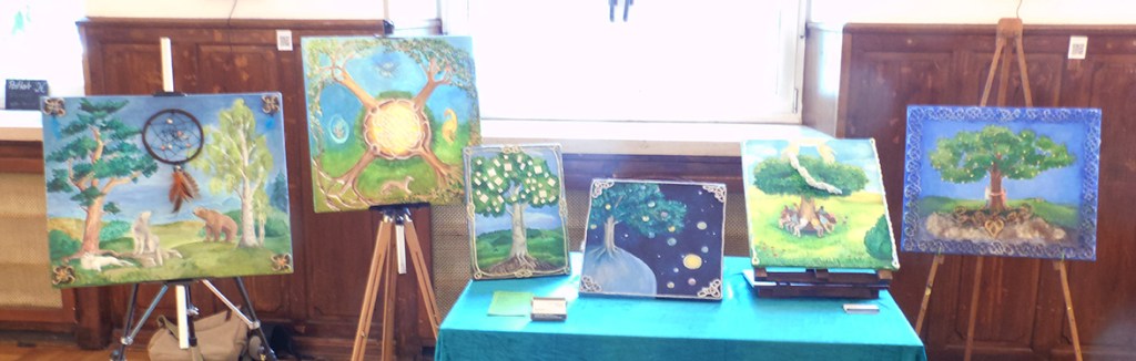Die Bilder wurden im Rahmen des Klexs-Theaterstücks „Weltenbaumgeflüster“ im Mai 2024 im Abraxas und im ehemaligen Rockcafé Augsburg ausgestellt.